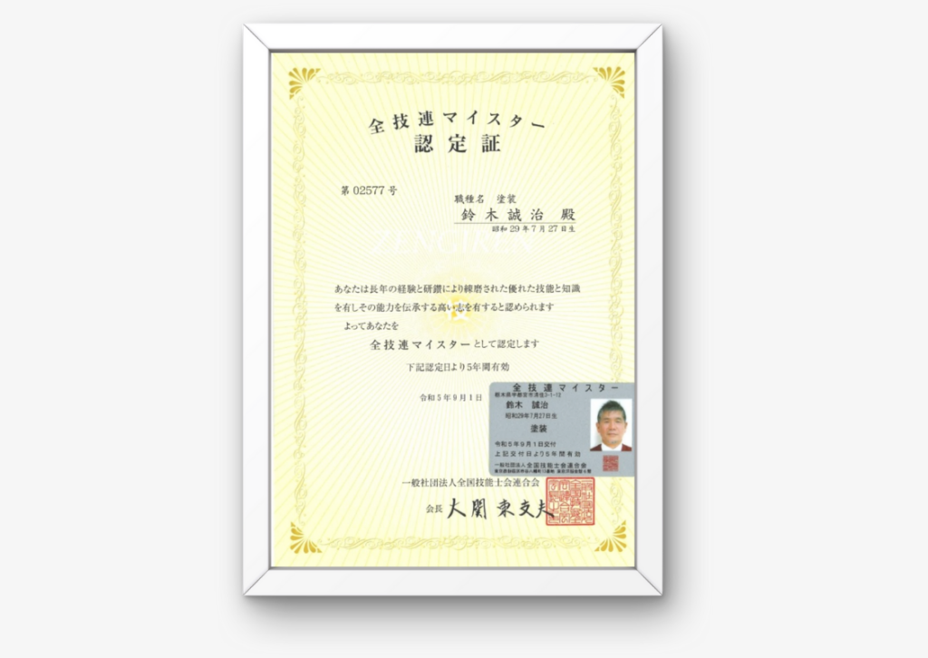 すずき塗装店は高い専門知識と技術を堅持し続けるために日々に研鑽を惜しみません。資格取得もその一環として取り組んでおります。