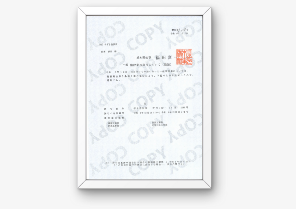 事業許可(建築工事業)栃木県知事許可般-24第2283号