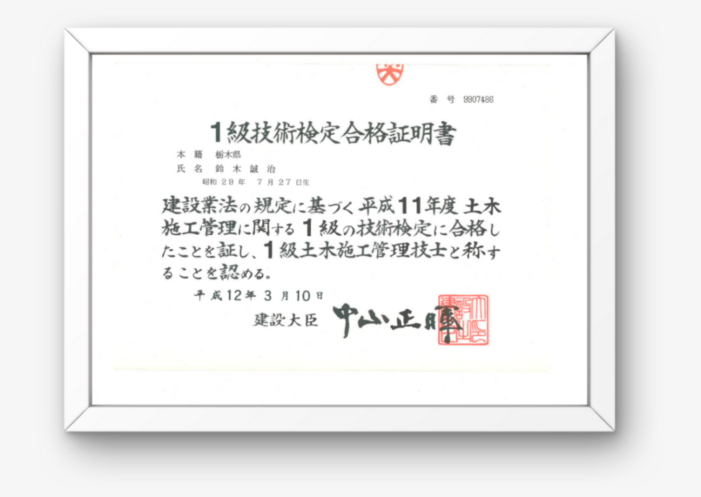 一級土木施工管理技士(平成12年度取得)
