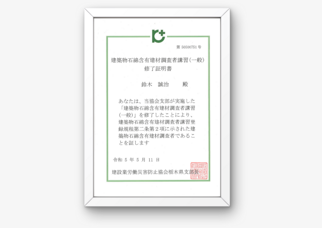 建築物石綿含有建材調査者講習(一般)令和5年年度取得