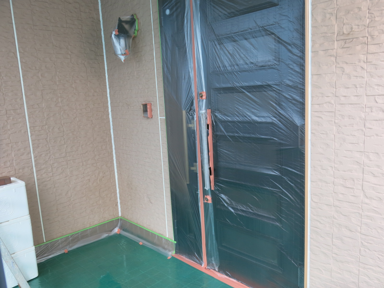 養生(ようじょう)とは、サッシや窓、エアコンのパイプ、ガスメーターや水道管など、塗る必要が無い部分をビニールで覆う作業のことを言います。